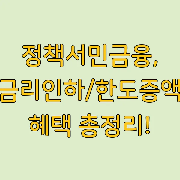 힘든 경제 상황 속에서 햇살 같은 희망을 찾고 계신가요? 🤔정책서민금융 상품의 금리 인하와 한도 증액 혜택으로 든든하게! 자금 걱정 덜고, 새로운 시작을 향해 나아가세요! 🚀햇살론뱅크, 소액생계비대출, 햇살론15 등 다양한 상품 정보와 활용 꿀팁까지,지금 바로 확인해보세요!든든한 지원군, 정책서민금융! 💖서민들의 경제적 자립을 돕기 위해 정부가 지원하는 정책서민금융! 💖다양한 상품과 혜택으로 힘든 시기를 이겨낼 든든한 지원군이 되어드립니다.자, 그럼 어떤 혜택들이 있는지 하나씩 꼼꼼하게 살펴볼까요?성실 상환, 빛나는 혜택으로 돌아온다!정책서민금융의 가장 큰 장점!바로 성실 상환 시 금리 인하와 한도 증액 등 다양한 혜택을 받을 수 있다는 점 이죠. ✨꾸준한 상환으로 신용도도 높이고, 금융 ..