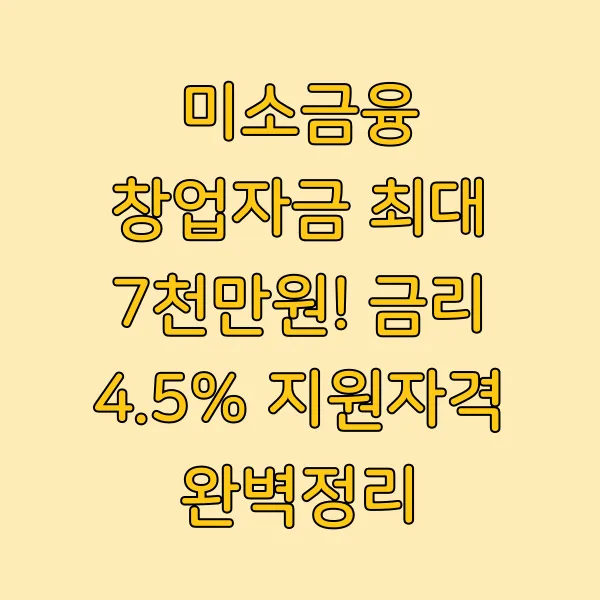 미소금융 창업자금 최대 7천만원! 금리 4.5% 지원자격 완벽정리