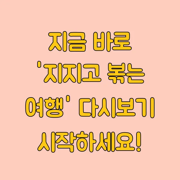 - 애플TV(Apple TV): 애플TV에서도 '지지고 볶는 여행'의 모든 에피소드를 시청할 수 있습니다. 애플 기기를 사용하시는 분들에게는 더욱 편리한 선택이 될 것입니다. 애플TV 바로가기